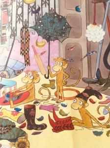 Auch wenn sie für drei lebhaften Äffchen verantwortlich ist, kann sie sie doch nicht den ganzen Tag beaufsichtigen. Immer mal wieder geht Hilda Besorgungen machen und lässt die drei unschuldig dreinblickenden Gesellen alleine im Haus.