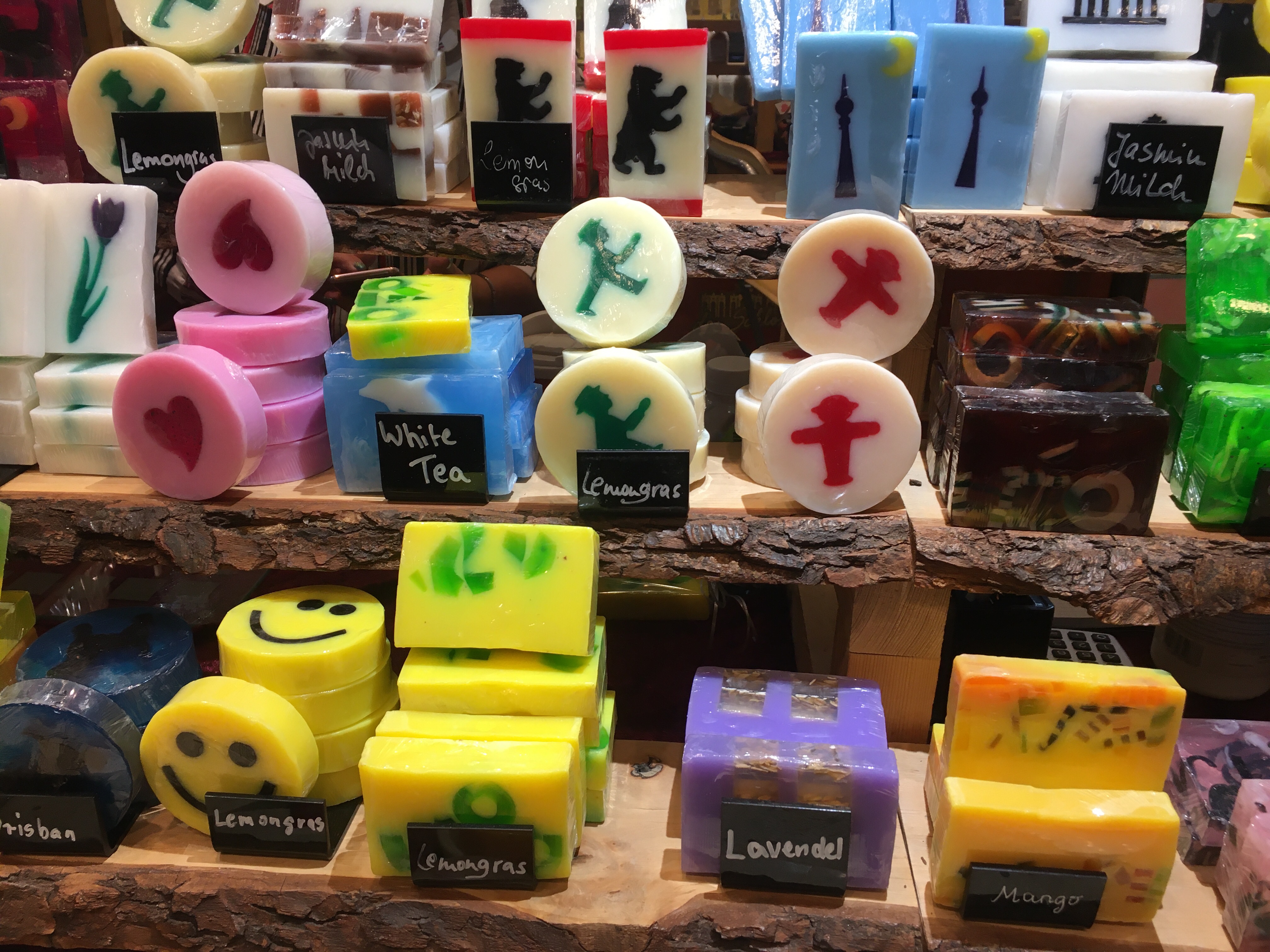 An zwei Ständen wird jedoch munter weiter verkauft: Ampelmännchen-Seife und Fruchtgummi von Bärenland. Erst kommt man nicht drauf, aber dann fällt der Groschen: Es handelt sich um Hygieneartikel und Lebensmittel. Frohes Shoppen!
