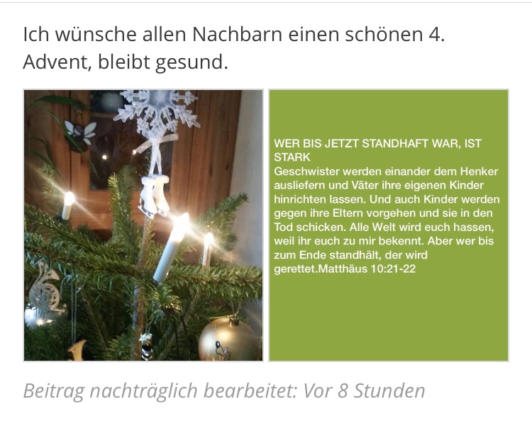 Im Nachbarschaftsnetzwerk teilt eine Frau diesen Beitrag: